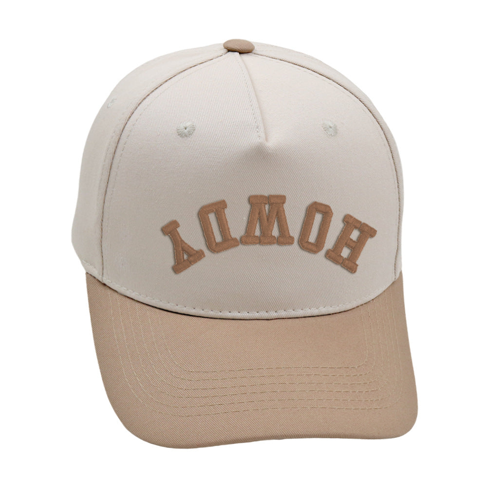 Two-Tone Beige Tan Cap with "HOMEY" Embroidery